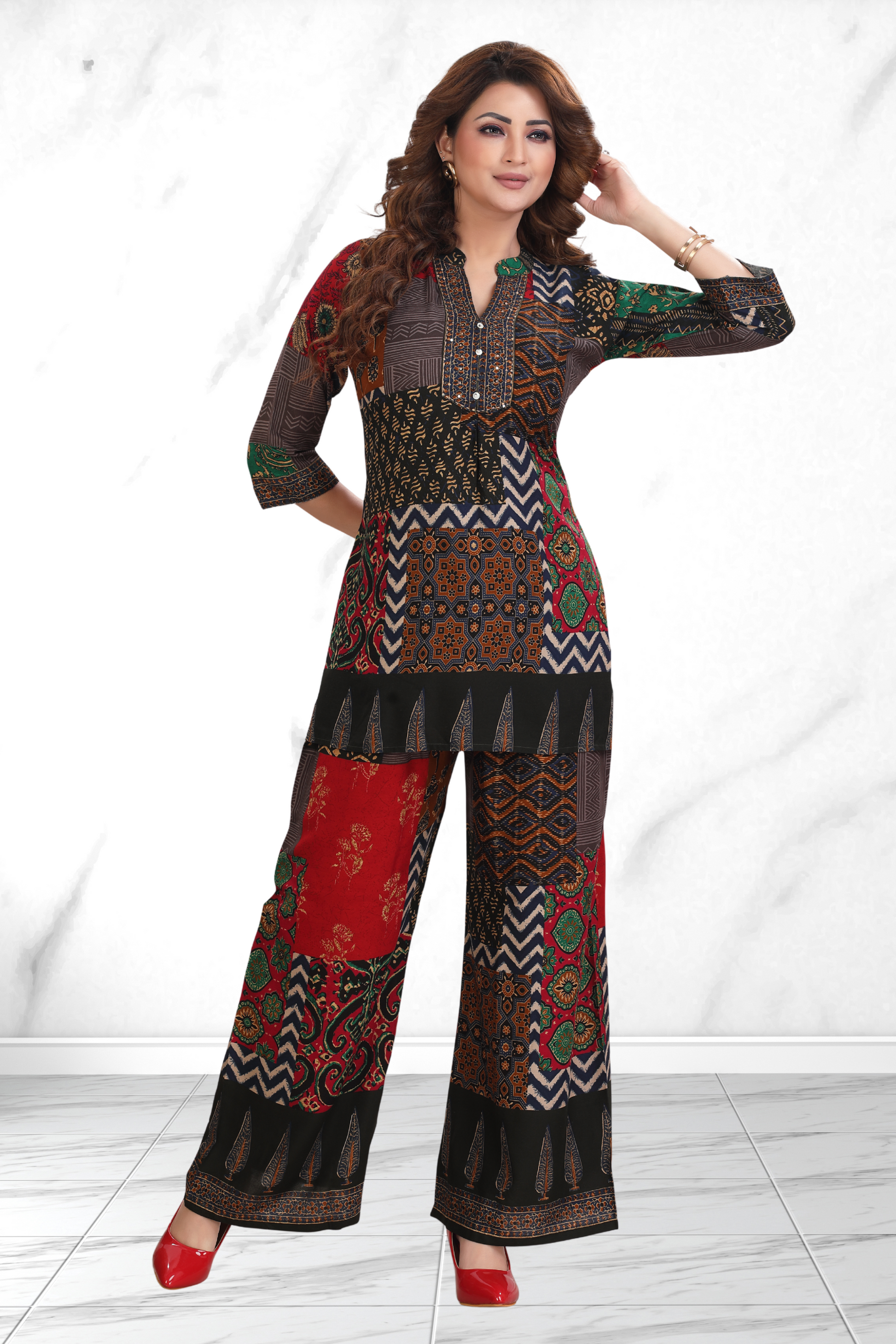 VIBRANT SLIK FUSION SET WITH DESIGNER NECKLINE