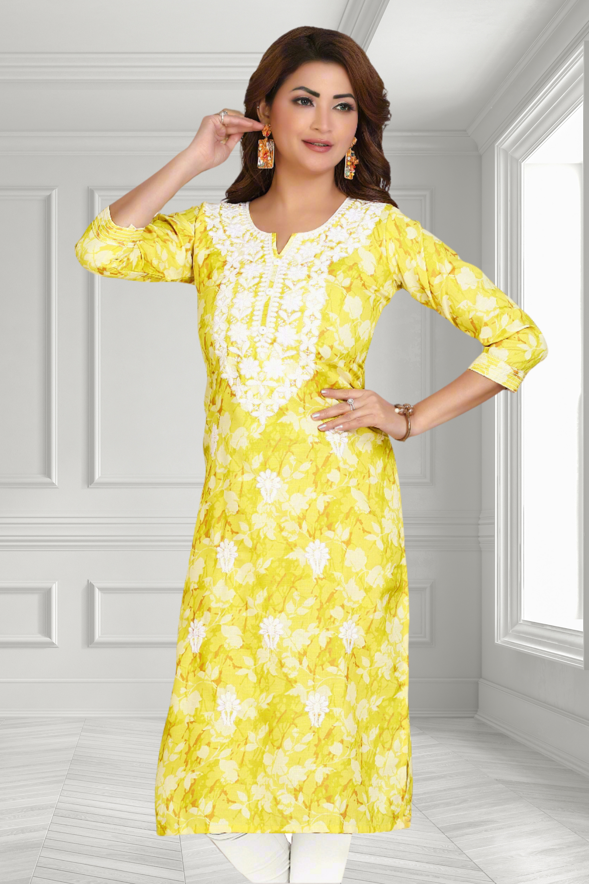 YELLOW EMBROIDERY KURTI